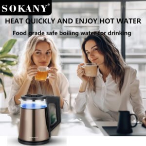 تتميز هذه الغلاية الكهربائية بقدرة 2000 وات وسعة 1.7 لتر، بالإضافة إلى مؤشر ضوئي، وخاصية الإيقاف التلقائي، ومؤشر لمستوى الماء لراحة المستخدم. كما أنها مزودة بفلتر قابل للإزالة والغسل، وتصميم أنيق من الفولاذ المقاوم للصدأ، وقاعدة طاقة لاسلكية قابلة للدوران 360 درجة لسهولة الاستخدام والصيانة.