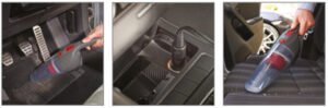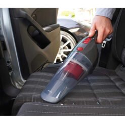 12V power – plugs into the car outlet – 120W performance for effective suction – 0.37L dustbin with easy-empty system