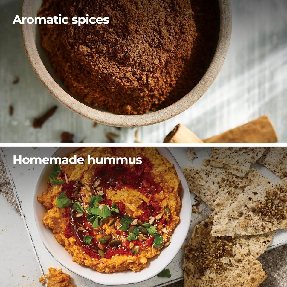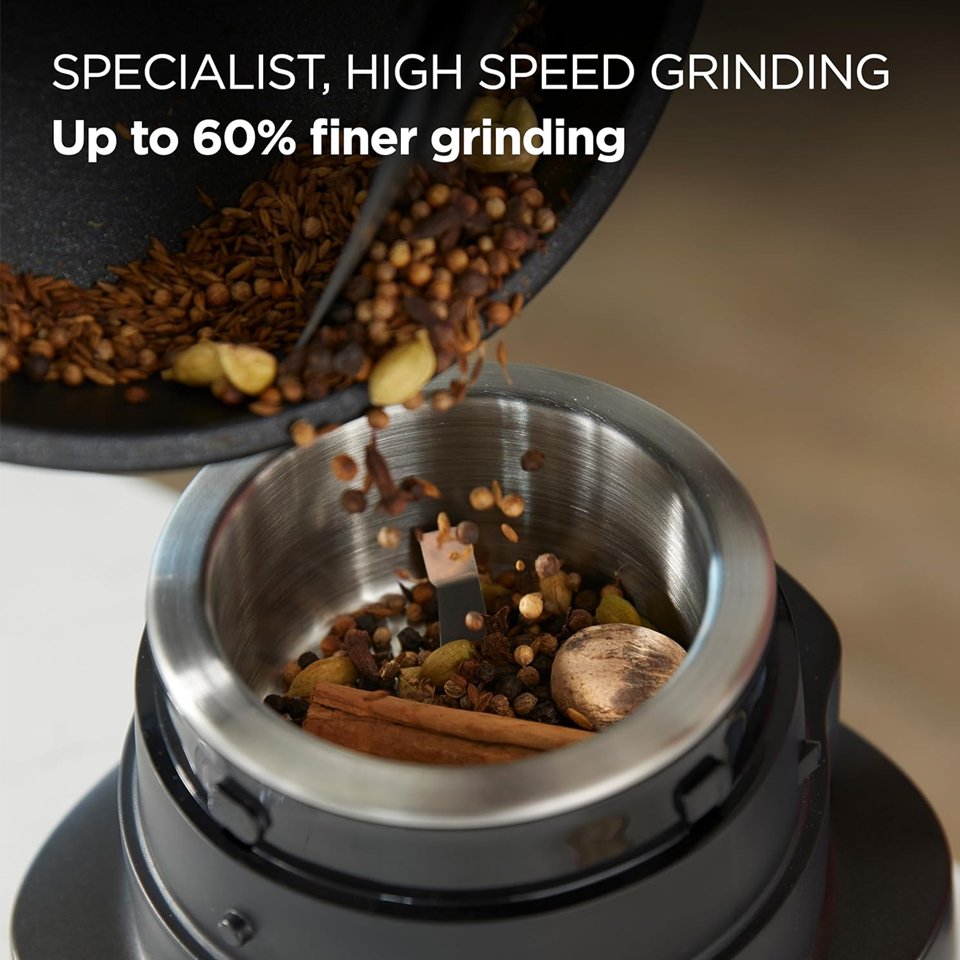 Grind spices, nuts and coffee beans in seconds with this precision, high-speed metal grinder. Marinades, rubs, spice mixes and more can be blitzed to perfection before you know it.
