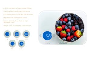Introducing the Kenwood Digital Kitchen Scale – the perfect solution for getting the right portion size and ensuring perfect nutrition for your family. This scale is easy to use and features a space-saving design, making it a great addition to any kitchen. You’ll never have to worry about overloading the scale or running out of battery, as it comes equipped with overload and low battery indications. The LCD display with on/off and tare function provides accurate readings every time, thanks to the high-precision strain gauge sensor. The surface is made of high-tempered glass, making it easy to clean and maintain. Get yours today and start enjoying perfectly portioned meals!