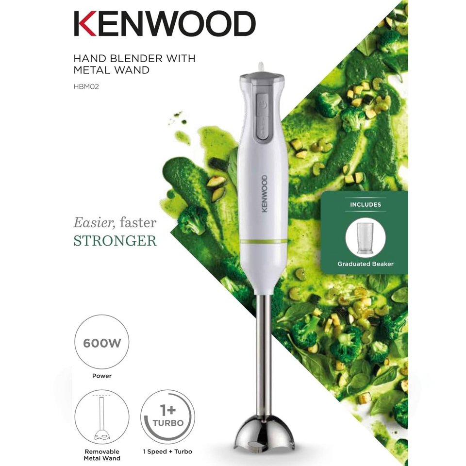 Experience effortless blending with the KENWOOD Hand Blender HBM02.001WH, designed to combine power, precision, and convenience in one compact appliance. Powered by a robust 600W motor, it ensures smooth and consistent results for soups, sauces, smoothies, and more. The durable metal wand handles hot and cold ingredients with ease, while the turbo function gives you an extra boost of power when needed. A graduated beaker is included for accurate measuring and blending, and the removable parts make cleaning quick and hassle-free. Finished in a sleek white and silver design, it’s the perfect blend of style and functionality for every modern kitchen.