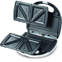 Start your day the smart way with the versatile Kenwood 2-in-1 Sandwich Maker. Designed to suit every taste, this compact and stylish appliance offers three interchangeable plates, allowing you to grill, toast sandwiches